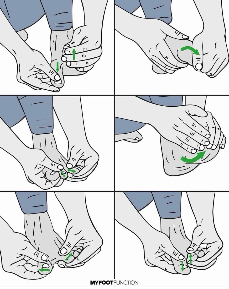 This is a great way to improve balance. Foot and ankle mobility mean a lot for our health. Careful on how much you move them at first. You can cause tendinitis when breaking up arthritis. Improve Toe Mobility: A 6-Step Guide! We are DELIGHTED to hear that this post alone has helped so many of you, for that reason it’s being shared again (& again)! Dedicated just 5 mins per foot each day, you’ll feel relief after performing these moves 😊 Struggling with stiff, immobile toes? Discover a practical and effective 6-step guide designed to boost your toe mobility, providing you with a path towards improved flexibility and strength. 💪 Step 1: Hold your foot with one hand and pull your toes away from the toe joints, repeat this for all toes. Step 2: Bend your lesser toes and big toe in opposite directions, as far as you can, making sure your lesser toes are flattened for full lengthening of the extensors. Step 3: Stabilise your foot and with your other hand, pull your big toe away from your 2nd toe. Step 4: Pull out your big toe and gently rotate the toe to decompress the joint. Step 5-6: Get as many fingers you a between your toes, starting with the 1st and 2nd toe, then gently move your toes in a circular motion. Incorporate this structured routine into your daily schedule, dedicating both morning and evening sessions to this essential practice. Lock in 7 days & see how your feet feel after this period! ☺️