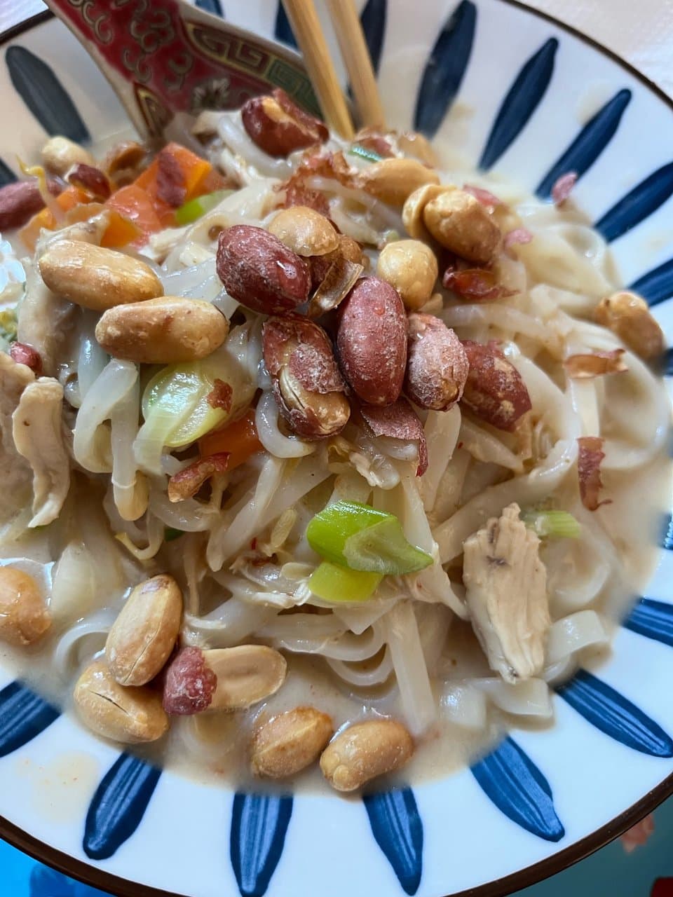 Made this delicious rice noodles with chicken peanuts, coconut, bean sprouts & vegetables. It was so quick to make and full of nutrients! Proud of myself 🙌