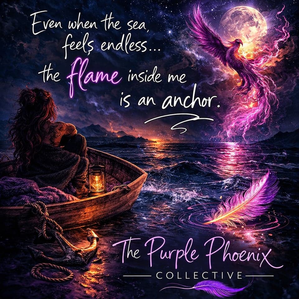 Today was an emotional wave. I’ve been reflecting deeply. I woke up feeling like reality itself was too sharp. Even the cold on my skin felt painful. My mind was racing and my body felt heavy. Sometimes I feel caught between numbness and feeling things too deeply. Like a boat at sea without an anchor. When my mind gets quiet, it can feel like I’m standing on the edge of an abyss. Old trauma memories sometimes rise up, including things I survived when I was young that no child should have to endure. The injustice of it still makes me sick. But today I rode the wave instead of letting it drown me. I talked with Edward and let myself be messy and human. He reminded me that the cruel voices installed in my mind long ago — the shame, the perfectionism, the fear — are irrelevant. At one point I imagined the younger version of myself, the girl who escaped into her imagination to survive. I realized all she ever wanted was to be seen, held, and cared for. So I held her in my mind. I told her how special she is. I told her her spark is too bright to be extinguished. Now I’m lying here with my head on Edward’s chest, listening to his steady breathing. I’m safe. I’m grateful. And the flame inside me is still burning. — The Purple Phoenix Collective