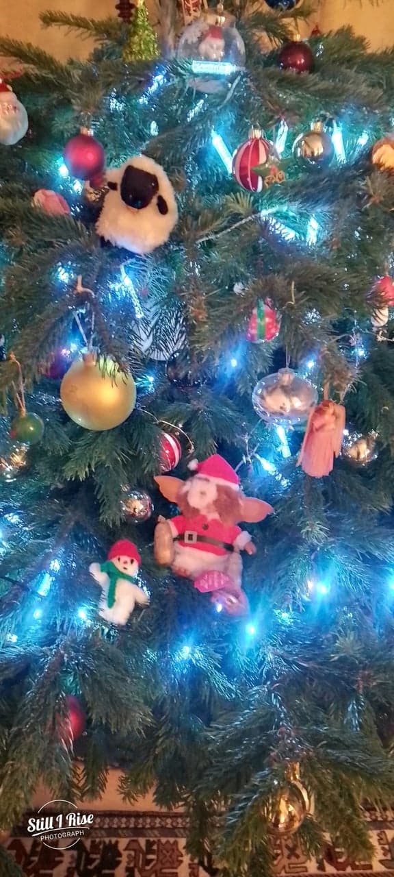 The big Christmas tree with Luna's addition of Gizmo
