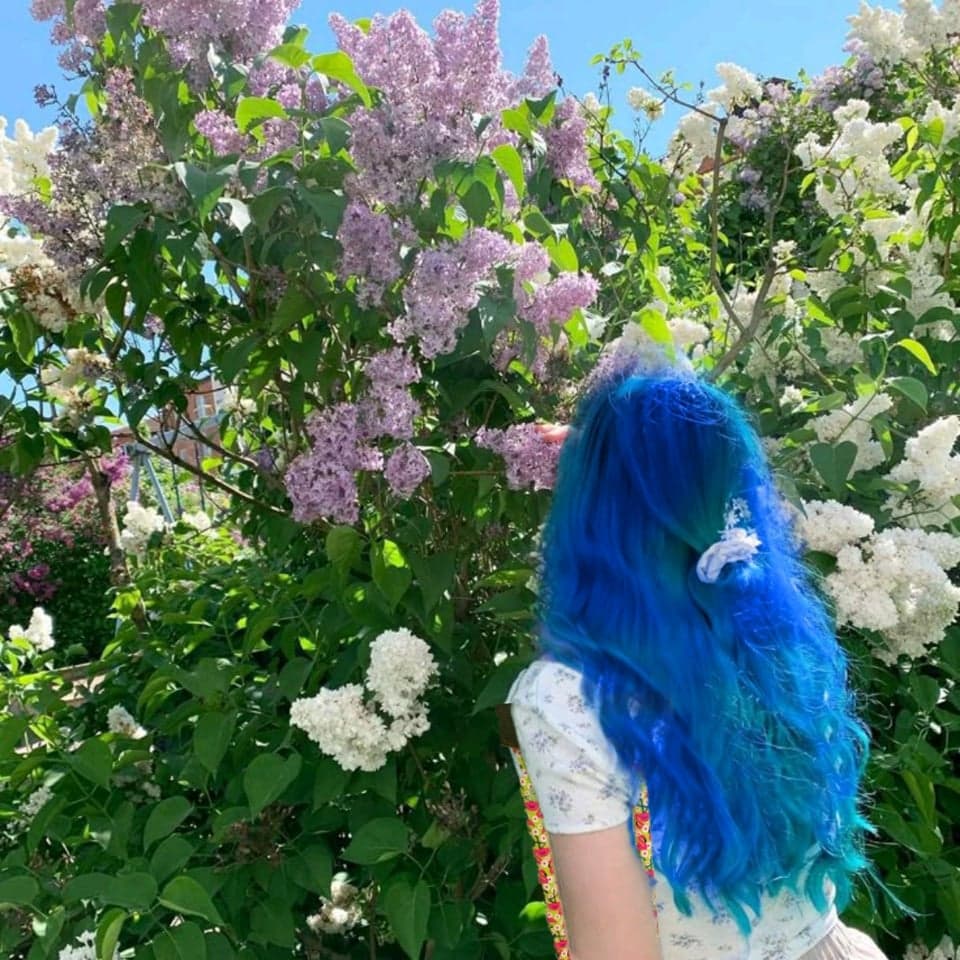 Admiring the flowers