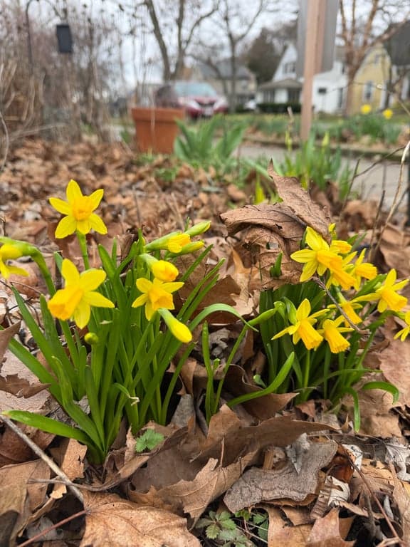 Half-pint daffodils are so sweet! I love how they pop right through the fallen leaves.
